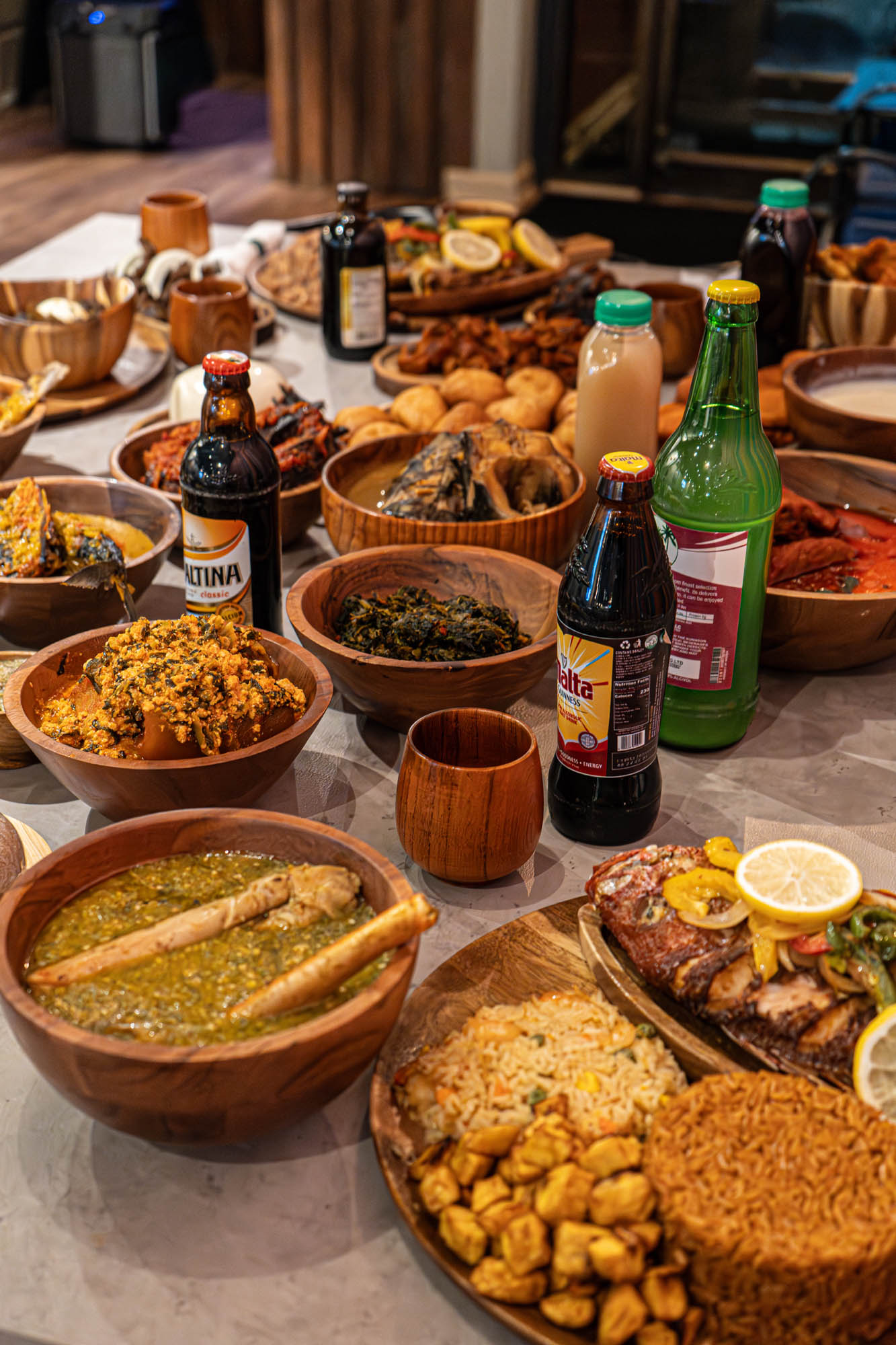 Dinner at Eatwell was delicious! The owner, DJ, and kitchen staff put together a memorable celebration for my dad's birthday. The menu had lots of flavorful stews that included meat and seafood. I had vegetarian options, which included efo elegusi with iyan and dodo. They offer palm wine as well. Definitely come and check this spot out for an authentic Nigerian meal!
