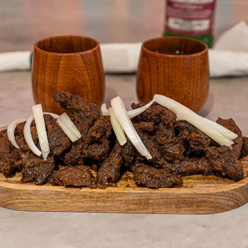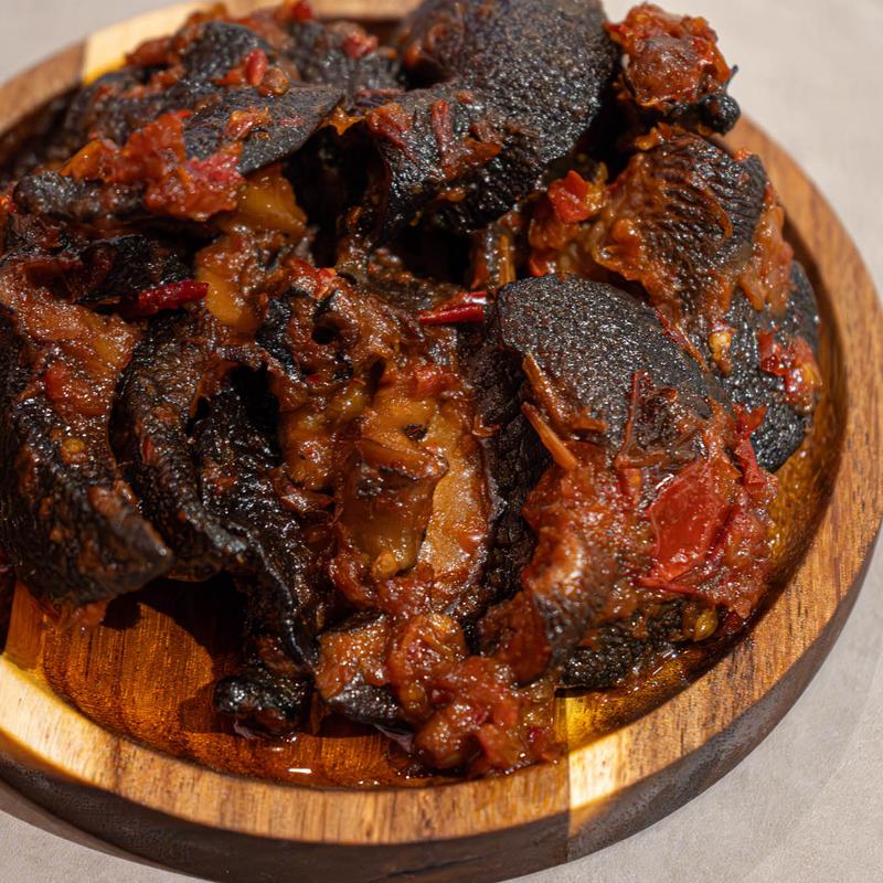 Experience the tantalizing zest of 'Spicy Pomo,' a dish that's more than meets the eye. Savor the tender chewiness of pomo enhanced by a robust blend of spices. Each bite is an invitation to explore layers of flavors in every mouthful.