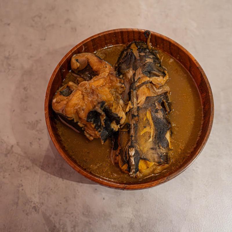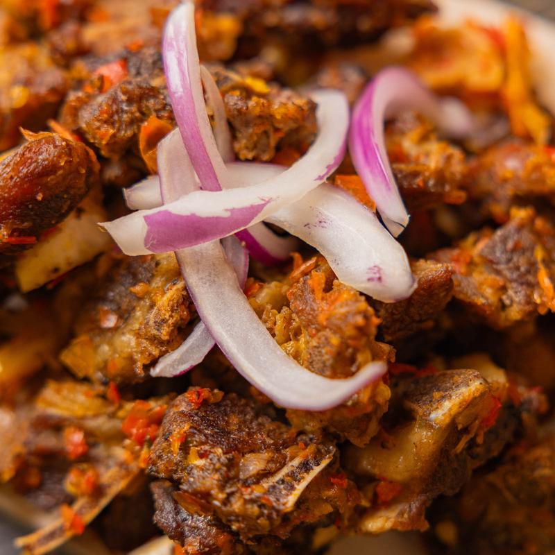 The rich broth, crafted from hours of careful simmering, envelopes each piece of goat meat, ensuring a harmonious fusion of flavors in every mouthful.